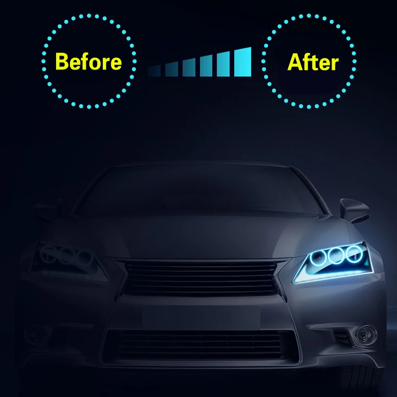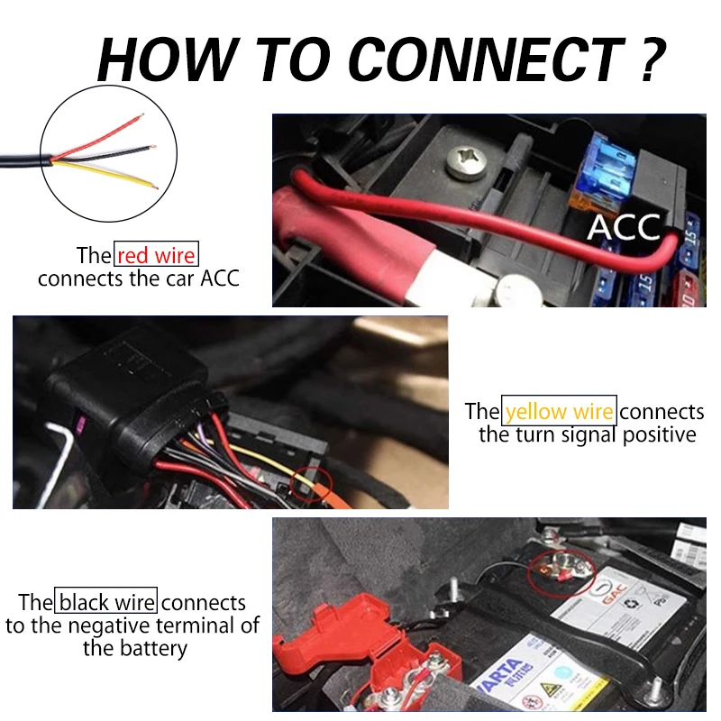 La instalación es sencilla y fácil de realizar. Solo necesita pegar las luces fuera del faro, conectar los cables según la siguiente configuración:
