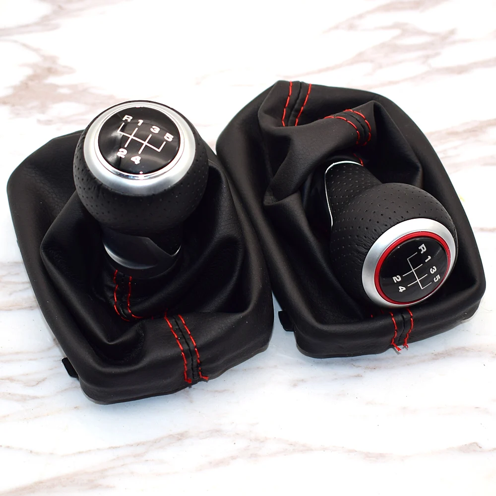 Perilla de palanca de cambios de 5/6 velocidades con estilo de coche de 12mm con polaina de cuero, cubierta de bota, puntada negra para Audi A3 S3 2001 2002 2003