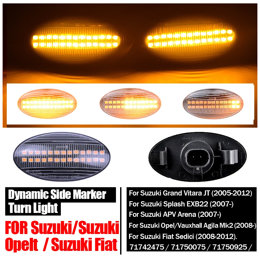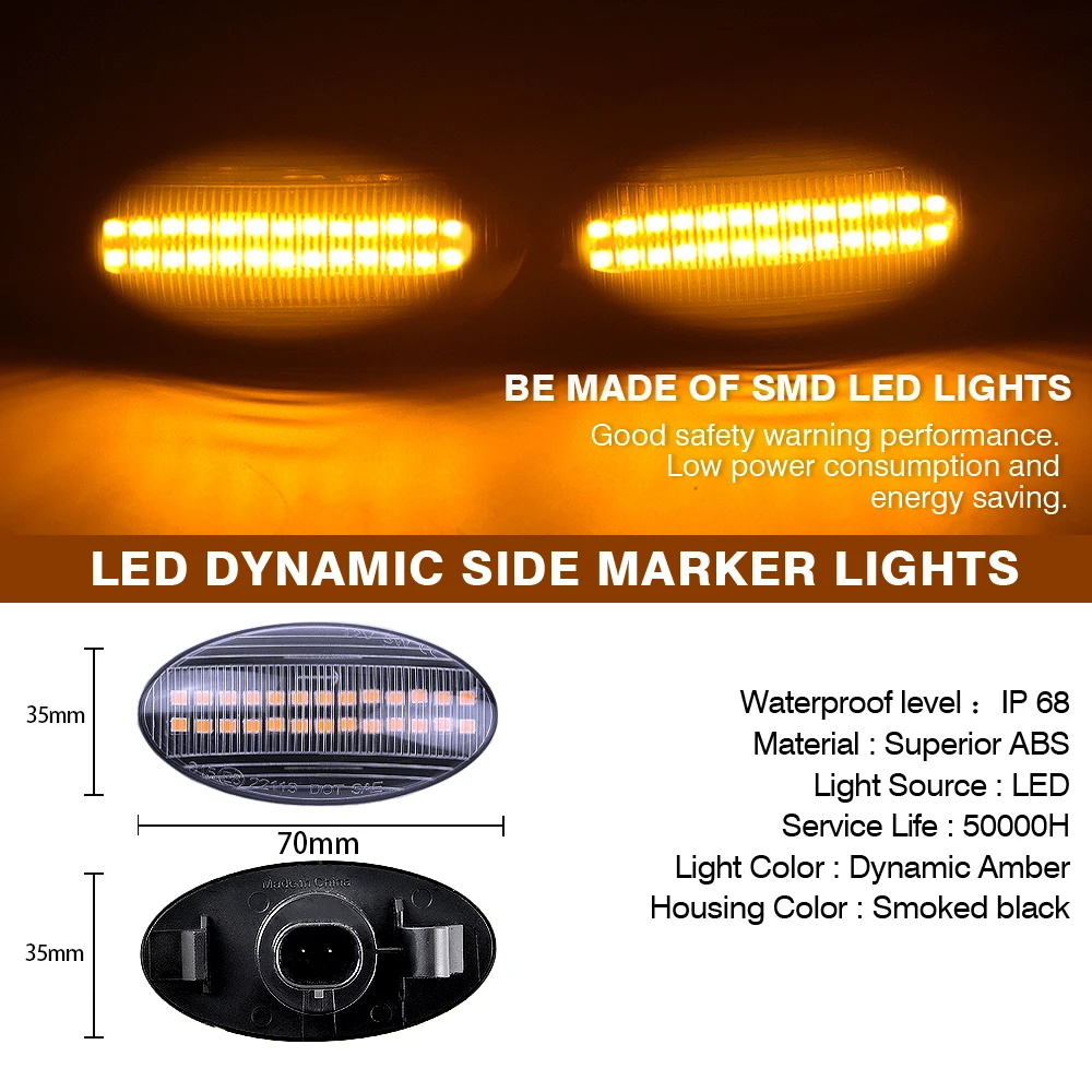 2 uds LED dinámico marcador lateral luces de señal de giro indicador ámbar repetidor luces de coche para Suzuki Swift Jimmy Vitara SX4-100% nuevo, 100% probado en fábrica.-Marcas líderes a nivel mundial, populares entre los clientes.-Precio competitivo con servicio profesional y alto estándar de calidad.-Instalación Plug and Play, conectada directamente al enchufe original. 100% LIBRE DE ERRORES.-Confirme el número de pieza antes de comprar o proporcione la forma de la imagen original del producto.-Lente semiesfuma, luce lujosa como estilo deportivo.-Señal de giro dinámica, desplaza suavemente. Es más fácil que otros conductores lo vean cuando gira a la derecha/a la izquierda.-Tecnología LED, más duradera. Con superficie mate resistente a los arañazos.-Certificado: IP67 E-mark, CE, DOT, SAE-¡Se ve perfecto de día y de noche!Mira nuestro vídeo. ¡Reemplazo verdaderamente perfecto!-Debido a la diferencia de luz y pantalla, el color del artículo puede ser ligeramente diferente al de las imágenes.-Permita diferencias de 1-2 mm debido a la medición manual. Por favor, comprenda.