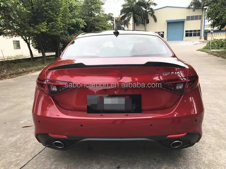 El alerón trasero de maletero para el Alfa Romeo Giulia 2017 es una pieza de alta calidad fabricada en fibra de carbono. Este material, conocido por su ligereza y resistencia, se utiliza en la producción del Alerón de fibra de carbono estilo QV, que ofrece un acabado brillante y un montaje preciso.