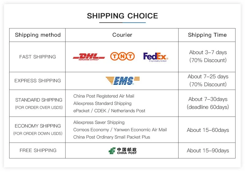 Si prefiere otros métodos de envío, no dude en contactarnos, muchas gracias. (Tenga en cuenta: puede ocurrir un cargo adicional, como el expreso)