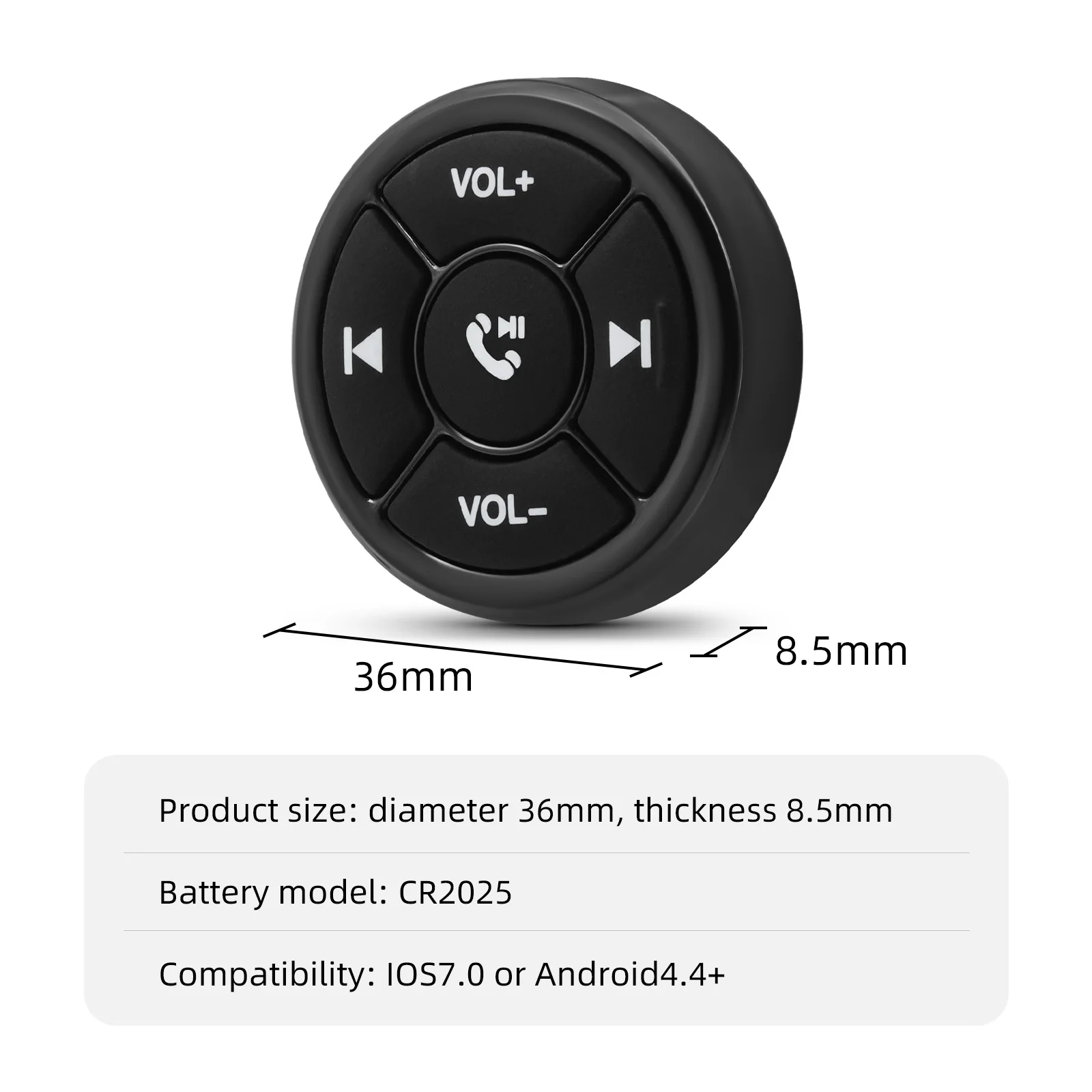No es necesario tocar el teléfono inteligente/tableta. Con este botón Multimedia Inalámbrico, puede controlar la música, tomar fotos y activar el asistente inteligente con una sola tecla.
