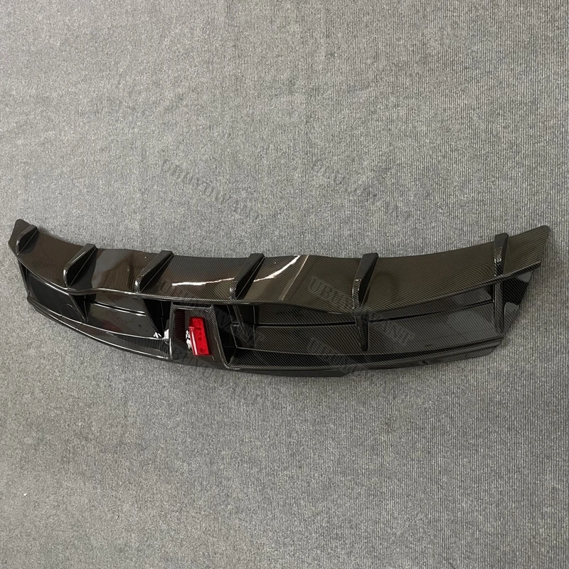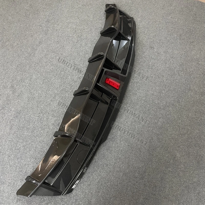 El difusor de parachoques trasero para Tesla Model Y 2018-2024 está fabricado en ABS negro brillante y presenta una apariencia de fibra de carbono, ofreciendo un estilo deportivo y moderno. Este accesorio mejora la estética del vehículo mientras proporciona protección adicional al divisor de maletero y a la placa de alerón.