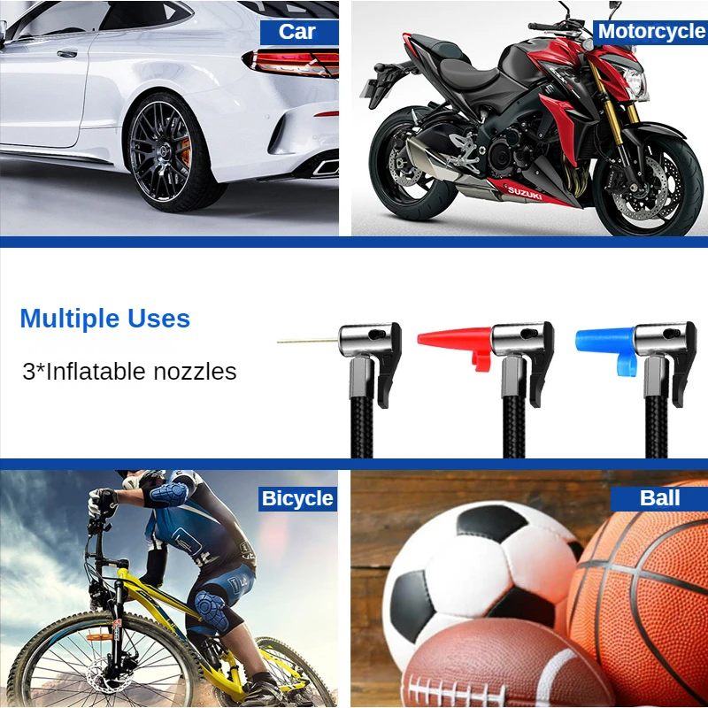 La bomba cuenta con una potencia suficiente para inflar rápidamente cualquier neumático, desde las llantas delaneras hasta las traseras. Además, su diseño resistente y duradero la hace ideal para uso frecuente en condiciones climáticas adversas.