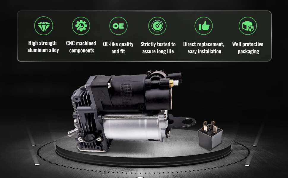 La compresora de suspensión frontal para Mercedes-Benz es una pieza crucial para mantener el equilibrio y la comodidad en las conducciones. Esta compresora, diseñada específicamente para modelos S-Class W221 Saloon 2005-2013 y C216 Coupe 2006-2013, ofrece un rendimiento superior al reemplazar los shocks originales.