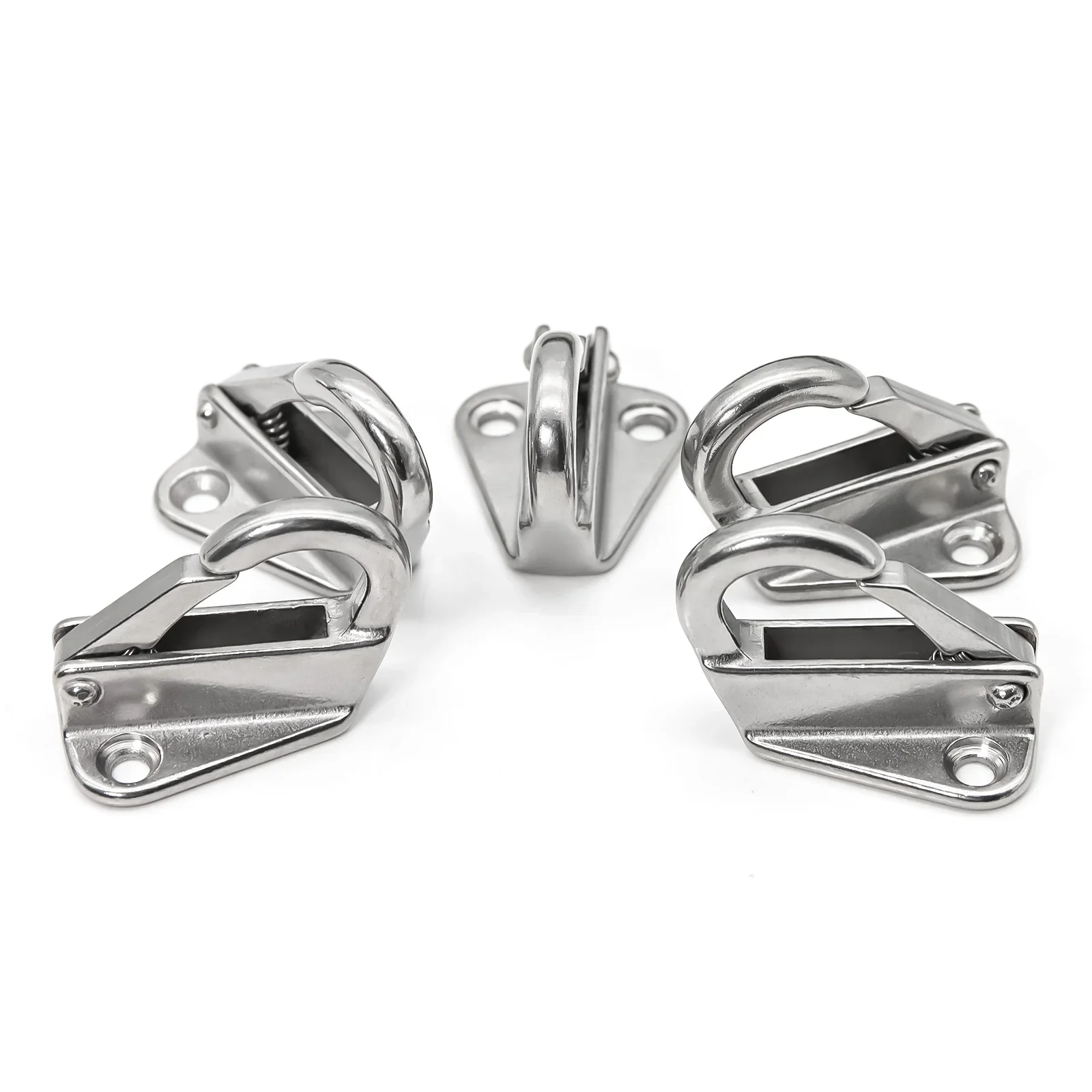Características: Fácil de instalar, duradero y resistente a la corrosión Múltiples aplicaciones, como embarcaciones marinas, camiones, furgonetas, caravanas, remolques Ajuste universal, adecuado tanto para uso interno como exterior como barco, yate Cara altamente pulida para una apariencia elegante y para combinar con las embarcaciones modernas de hoy Gancho para guardabarros bloqueado con resorte para barco marino de acero inoxidable 316 de alta resistencia y alta resistencia Especificaciones: Color: Plata Longitud de la placa: aproximadamente 43 mm Ancho de la placa: aproximadamente 31 mm Material: acero inoxidable 316 Ancho del ojo: aproximadamente 5 mm Altura del ojo interior: aproximadamente 13,5 mm Longitud abierta del resorte: aproximadamente 11 mm El paquete incluye: