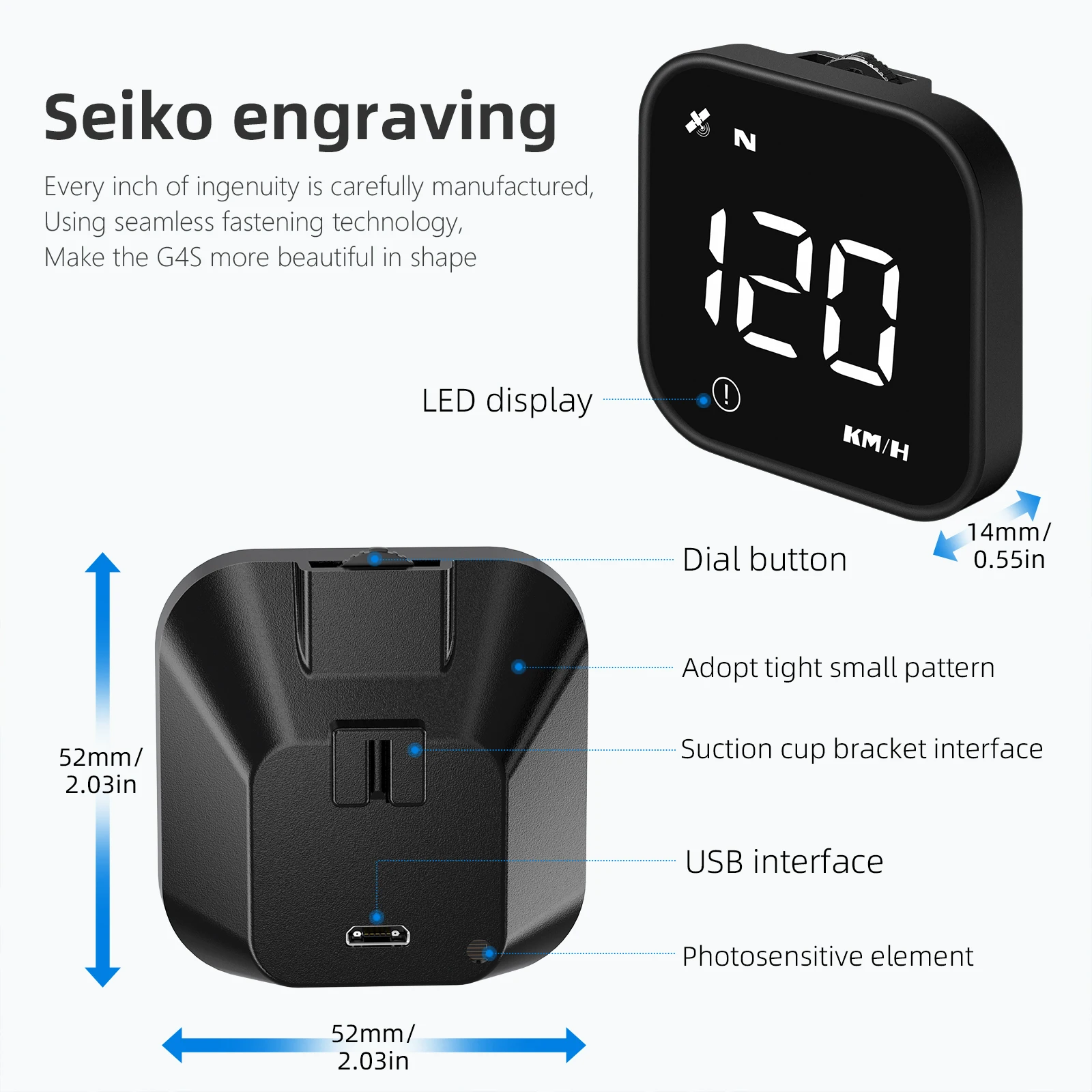 GPS para coche Head Up Display G4S KMH Velocímetro digital Pantalla LED Alarma de exceso de velocidad Brújula Computadora a bordo Pantalla inteligente para coche