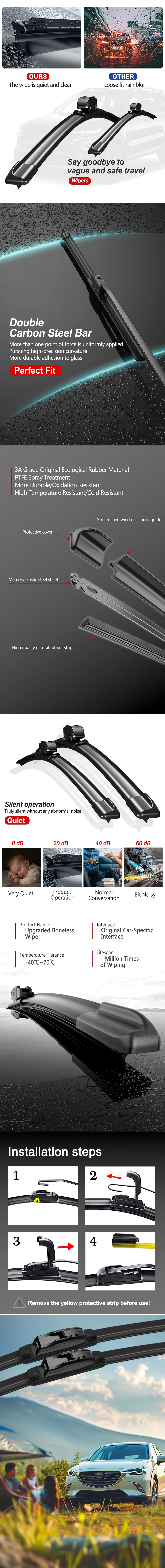 Valoramos la satisfacción del cliente y nos esforzamos por ofrecer escobillas de limpiaparabrisas de alta calidad. Si tiene alguna pregunta sobre la compatibilidad o la instalación, no dude en contactarnos. Alentamos a los clientes a dejar comentarios y compartir fotografías de su experiencia de instalación. Su información nos ayuda a mejorar y proporcionar mejores propietarios de productos.