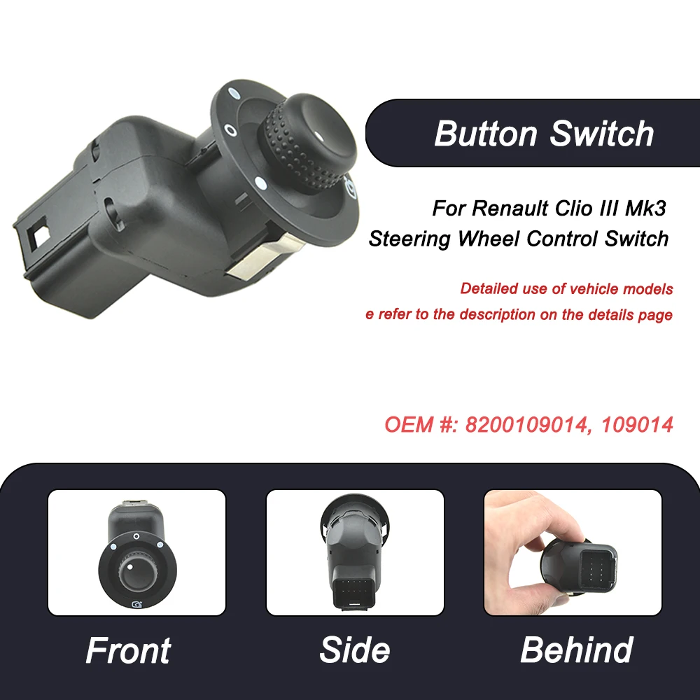 El interruptor de control de botón de espejo retrovisor de coche, con 10 terminales, es un componente crucial para el funcionamiento correcto de los espejos retrovisores en vehículos Renault. Este interruptor cumple con las normas OE (Original Equipment) y está diseñado específicamente para modelos como el Renault Laguna II, Megane II y otras versiones.