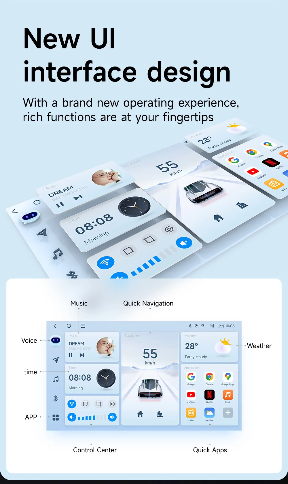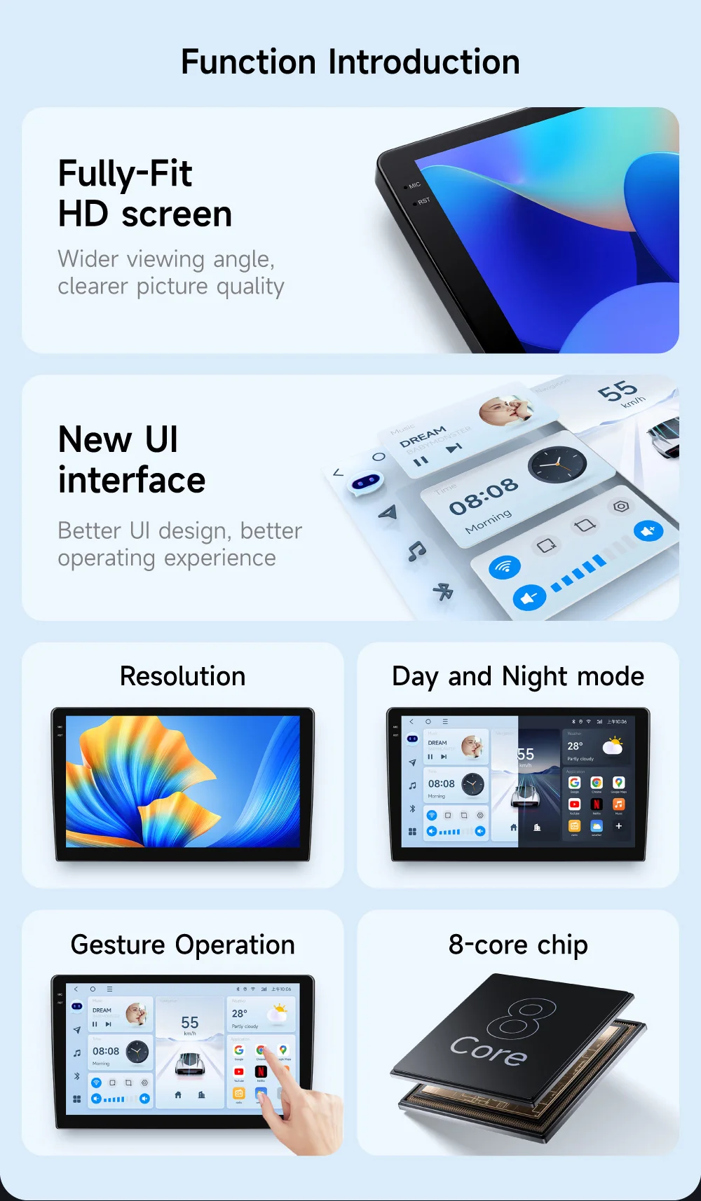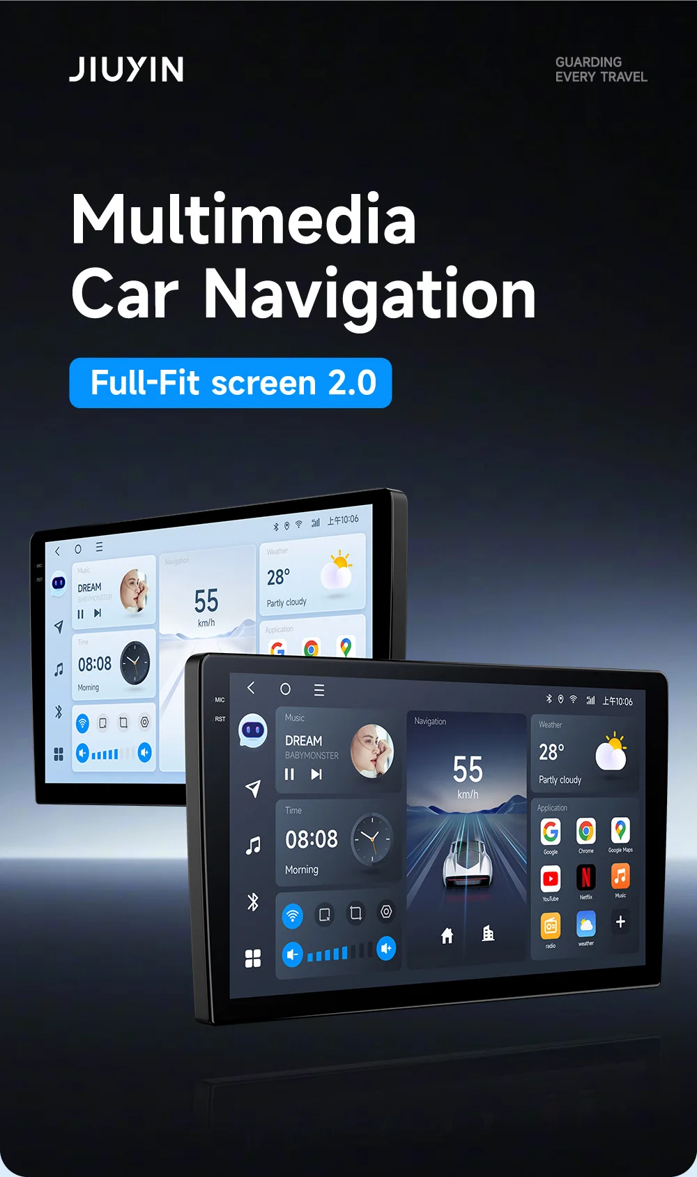 El JIUYIN inalámbrico CarPlay Andorid 13 es un radio de alta gama que combina funcionalidad con estilo. Su interfaz táctil de 13 pulgadas proporciona una visualización clara y fácil de usar, permitiendo navegar por Internet, reproducir música, hacer llamadas y utilizar aplicaciones de voz sin distracciones. La integración perfecta con sistemas Apple CarPlay y Android Auto permite un control intuitivo de todo el contenido multimedia desde tu dispositivo inteligente.