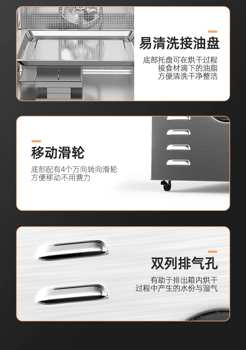 El Jq Secador giratorio cuenta con una variedad de funciones útiles, como la programación horaria, que te permite ajustar el tiempo de secado según tus necesidades. También tiene un sistema de luz LED que ilumina los alimentos durante el proceso, asegurando su higiene y frescura.