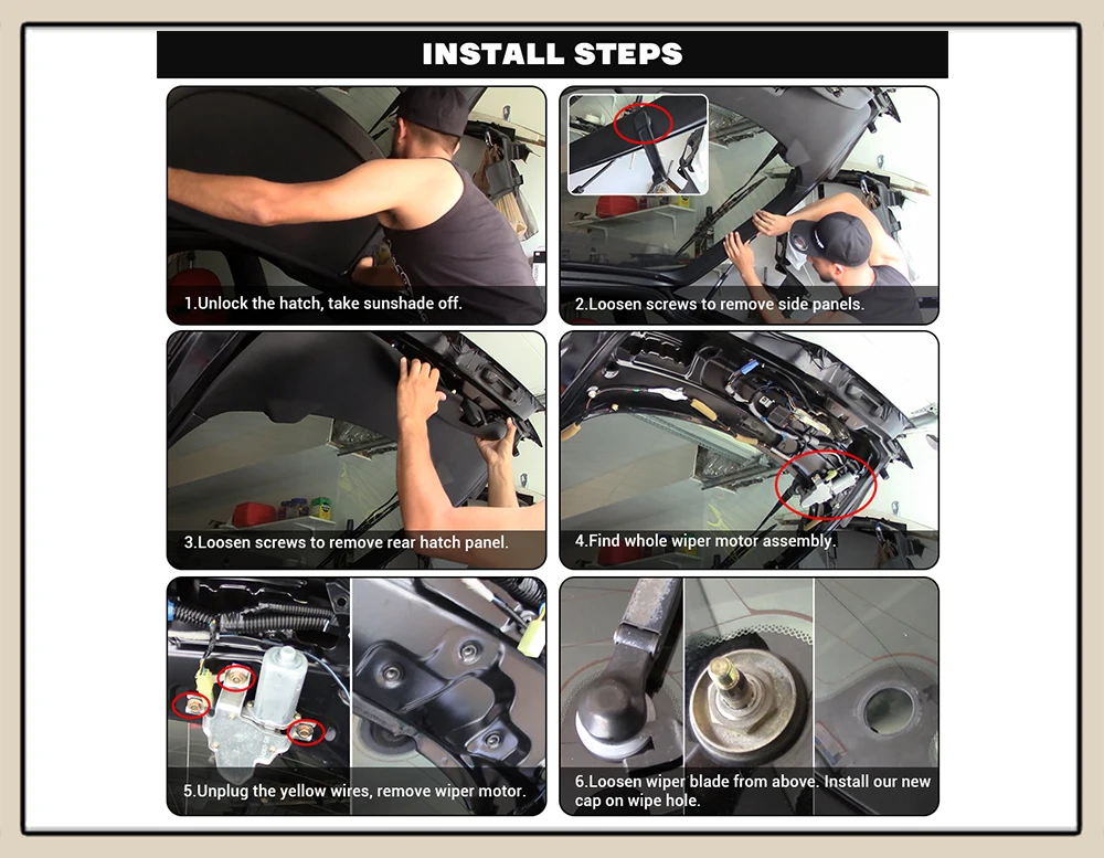 Cubra el orificio del limpiaparabrisas trasero. Reemplace directamente el viejo o dañado.
