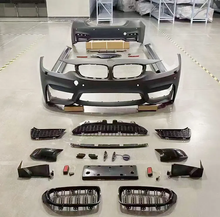 El conjunto suele incluir parachoques delantero estilo M4, parachoques o difusor trasero específico, rejillas decorativas y, según la versión, algunos detalles adicionales como soportes o guías de montaje. Antes de realizar la compra es recomendable confirmar con el vendedor el listado exacto de piezas y si tu vehículo equipa sensores de aparcamiento, lavafaros u otros elementos que requieran perforaciones o soportes adicionales.