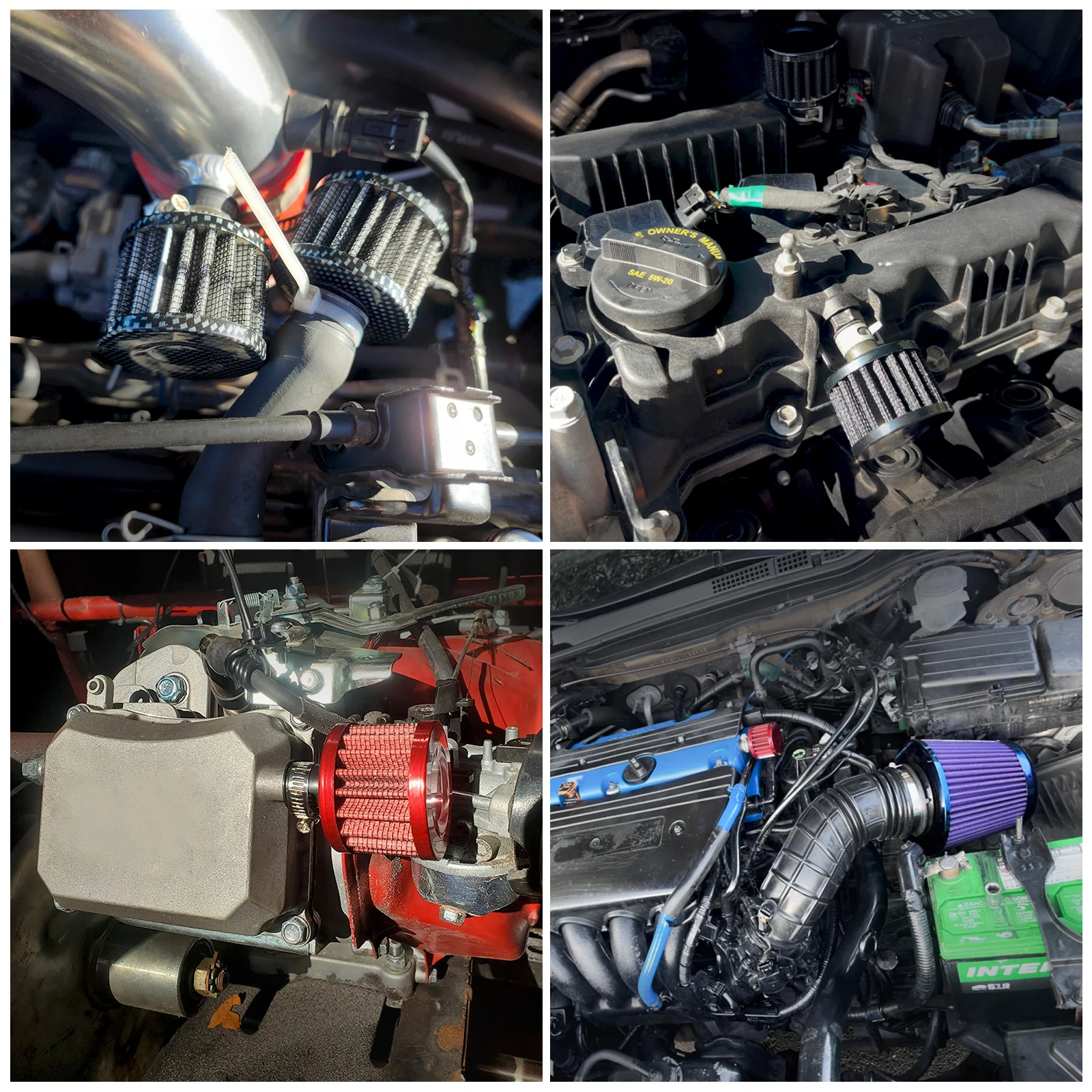 Amplias aplicaciones: ayuda a introducir más aire en su motor para mejorar la respuesta del acelerador y mejorar la potencia. La malla fina aumenta la cantidad de flujo de aire, endereza el flujo y deja de aspirar aire caliente desde el compartimiento del motor de alta temperatura.