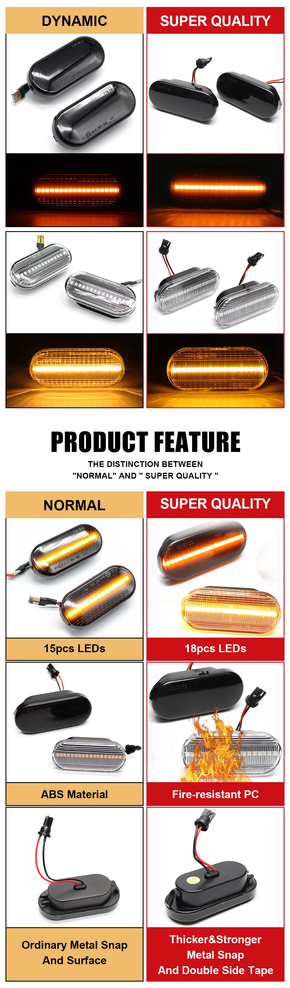 Luz de posición lateral dinámica, lámpara intermitente de señal de giro para SEAT Leon Ibiza 6L Ford Focus MK2 VW Golf 3 4 Lupo Passat Polo 6N 9N Bora
