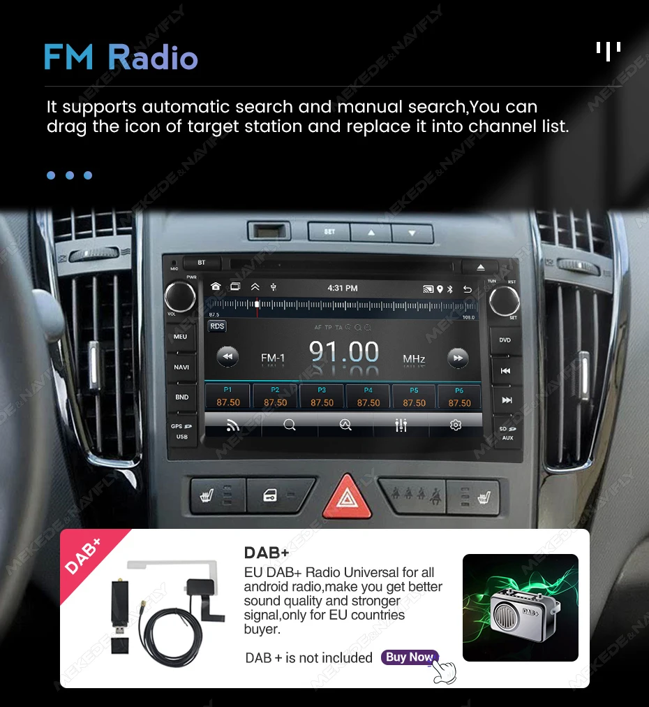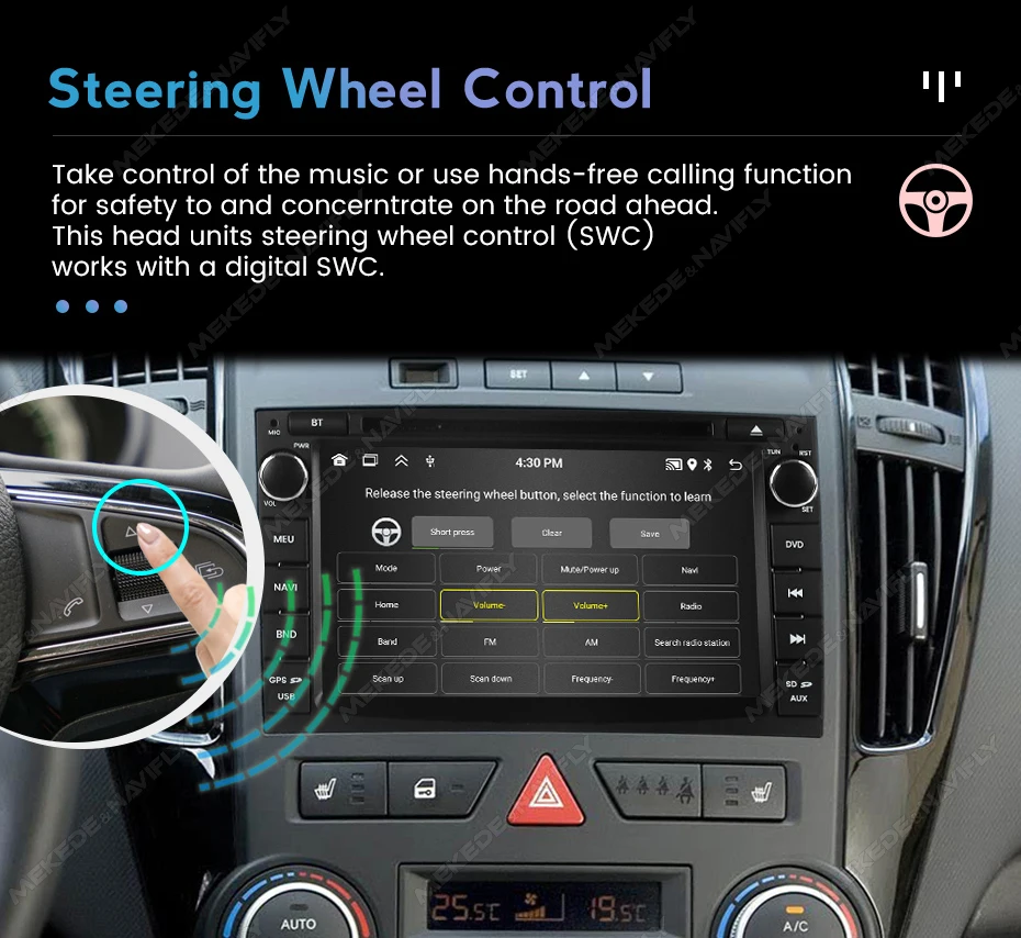 Controle la música o utilice la función de llamada manos libres para garantizar la seguridad vial por delante.El control del volante (SWC) de la unidad funciona con SWC digital.