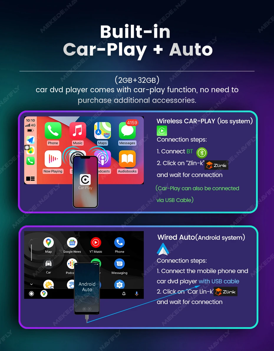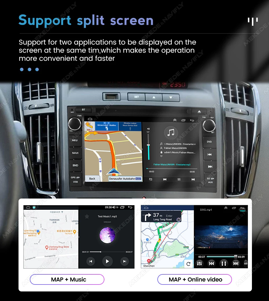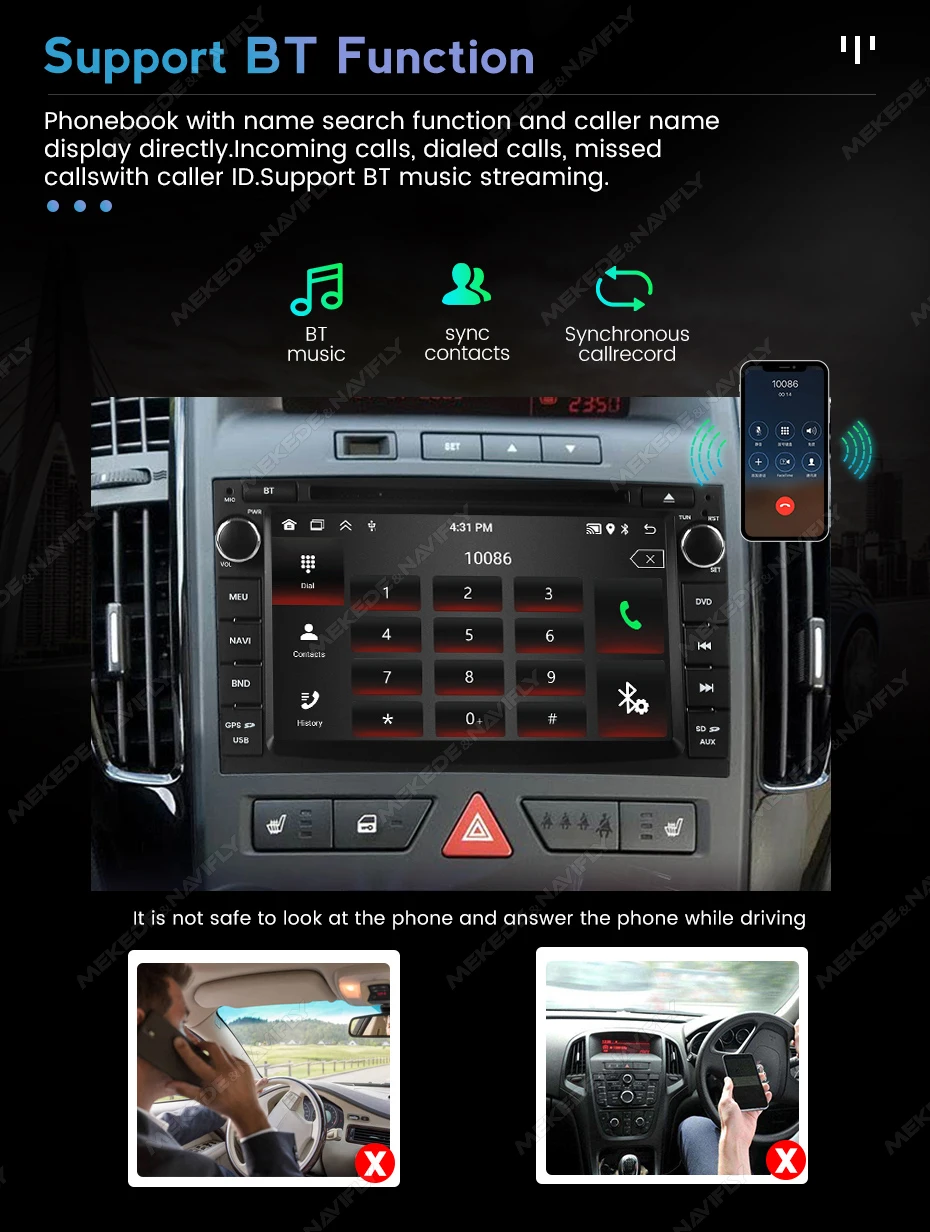 Sistema BT inteligente integrado, admite emparejamiento BT móvil, marcación manos libres, admite botones del volante para escuchar en la calle, charlar con otros, garantizando su seguridad en la conducción