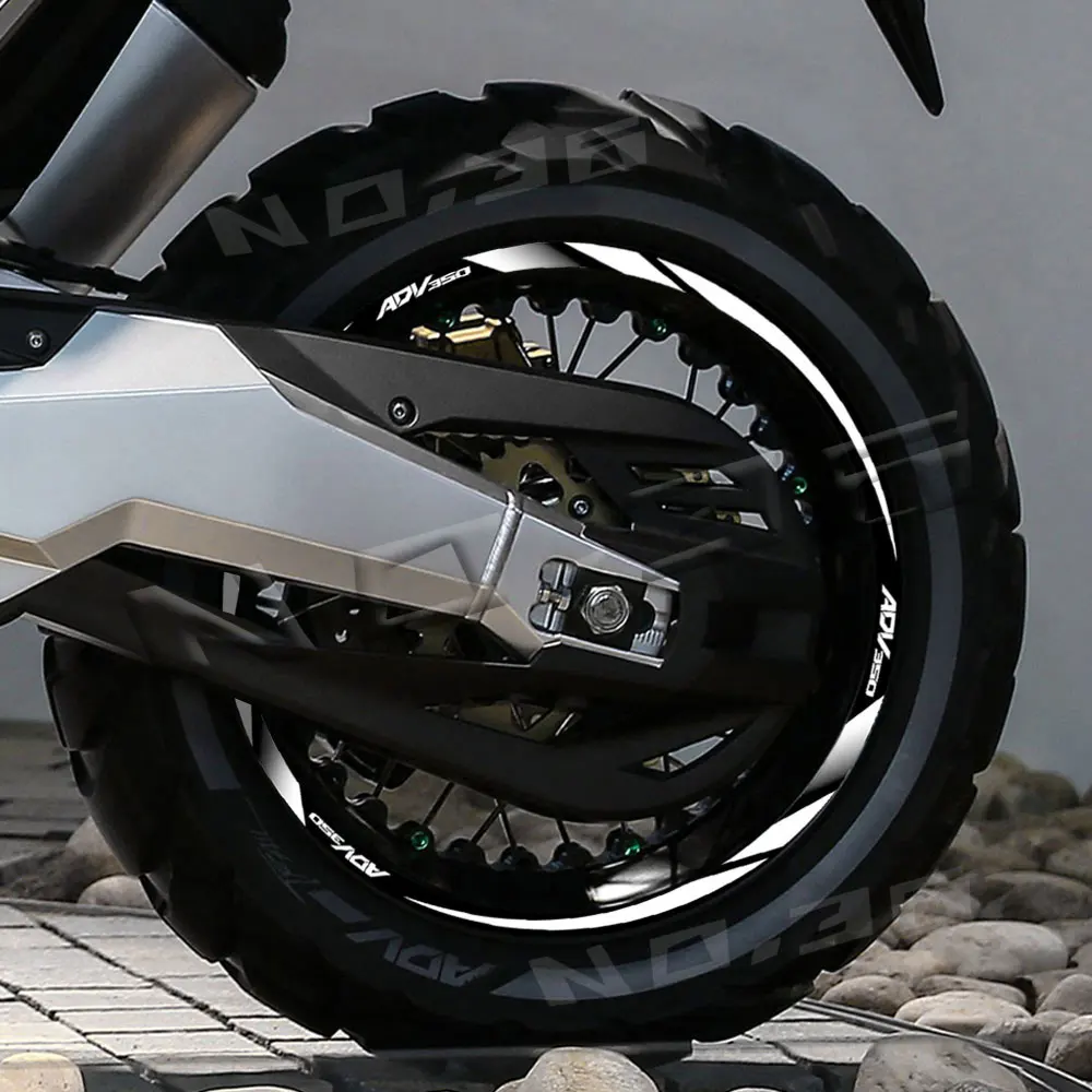 El diseño está adaptado específicamente a las proporciones de la Honda ADV 350, por lo que las tiras siguen la curvatura de la llanta y se integran de forma natural con el resto de la estética de la moto. Una vez aplicadas, las pegatinas parecen parte del acabado original de fábrica, aportando un toque racing discreto durante el día y un reflejo muy llamativo cuando cae la noche. La combinación de seguridad pasiva y personalización estética convierte este kit en un accesorio muy completo para cualquier propietario de una ADV 350.