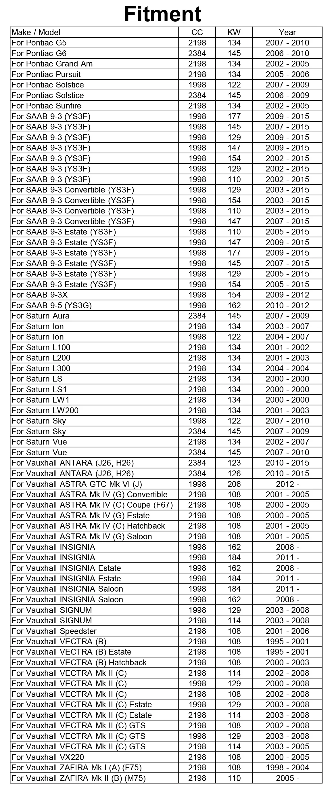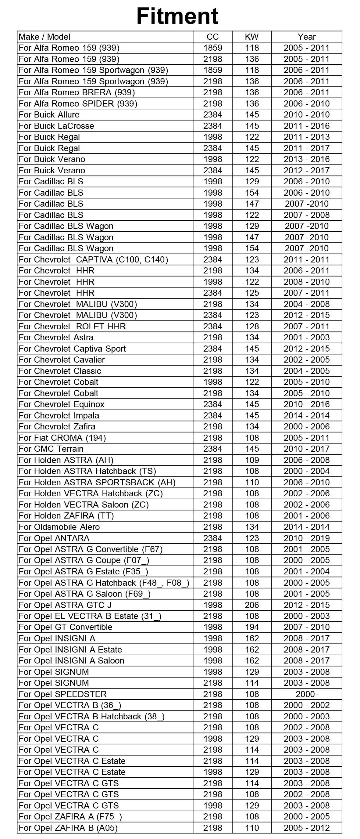 Este filtro se puede adaptar a varios modelos, incluyendo Buick Chevrolet HHR, Cadillac BLS y Chevrolet Malibu. Sin embargo, es crucial verificar su compatibilidad con su vehículo específico antes de realizar el montaje. Para obtener la tabla de compatibilidad más precisa o para confirmar si el filtro se ajusta a su modelo, recomendamos consultar nuestra tabla de compatibilidad o enviar su número V.I.N. para una verificación detallada.
