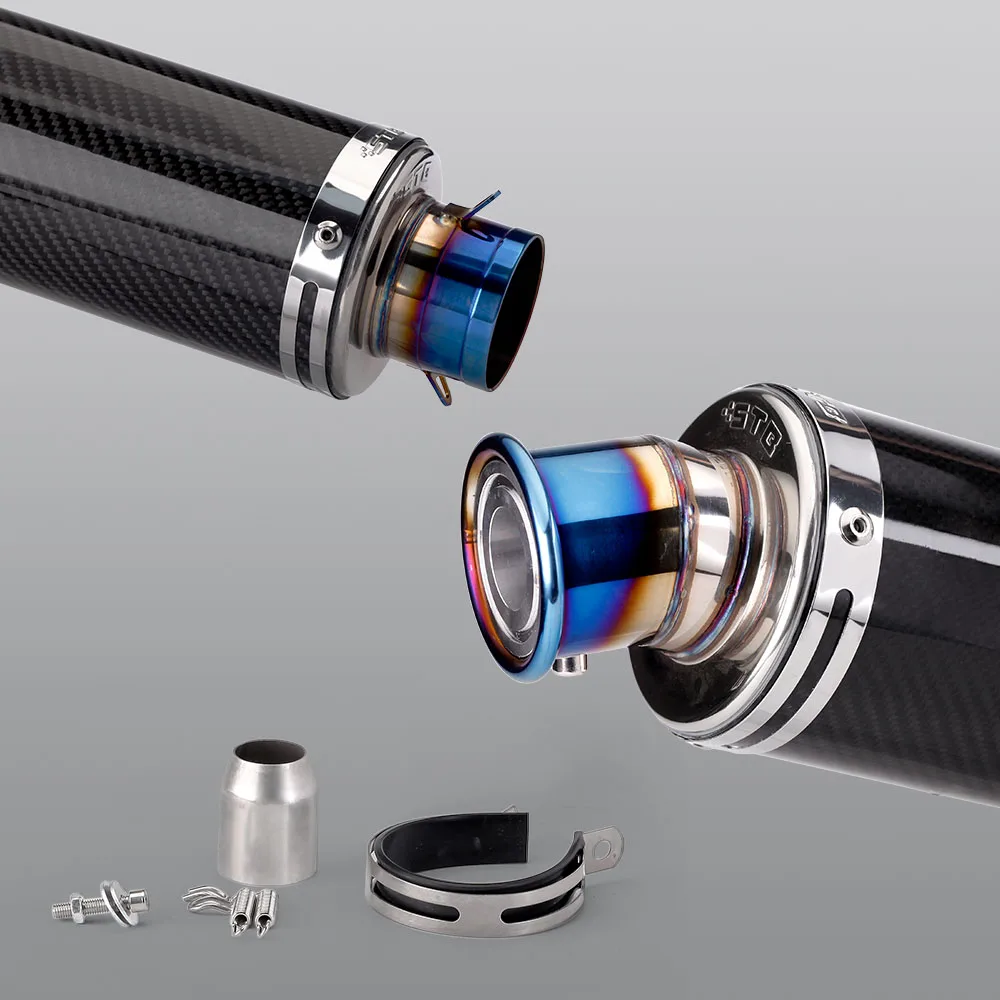 La mayoría de silenciadores de origen están diseñados para ser discretos, cumplir estrictamente las normativas de ruido y, en algunos casos, reducir costes de fabricación. Esto suele traducirse en un sonido bastante contenido y en un diseño voluminoso que no siempre encaja con una estética deportiva. Con este silenciador universal de fibra de carbono, se consiguen varias mejoras notables: