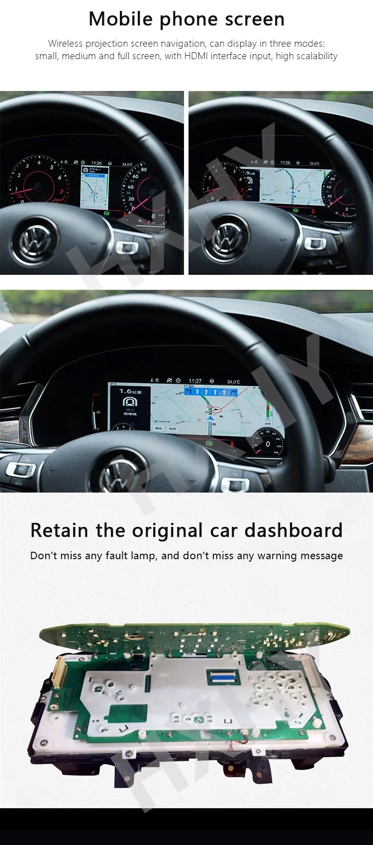 La unidad es compatible con VW Passat CC B6 B7 del año 2009 al 2016, garantizando una instalación precisa y segura. Su diseño compacto y resistente le permite integrarse perfectamente en el tablero LCD original del vehículo, ofreciendo un look moderno y tecnológico.
