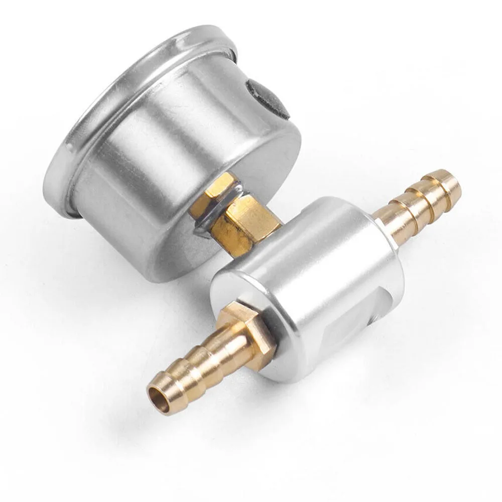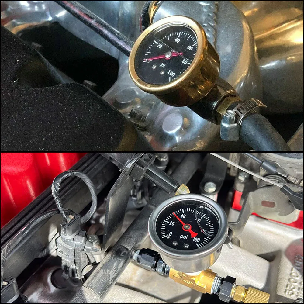 Este manómetro de presión de combustible es ideal para ajustar correctamente el sistema de inyección o carburador. Diseñado con llenado líquido, garantiza estabilidad en la aguja durante el funcionamiento del motor.