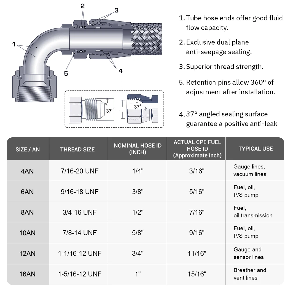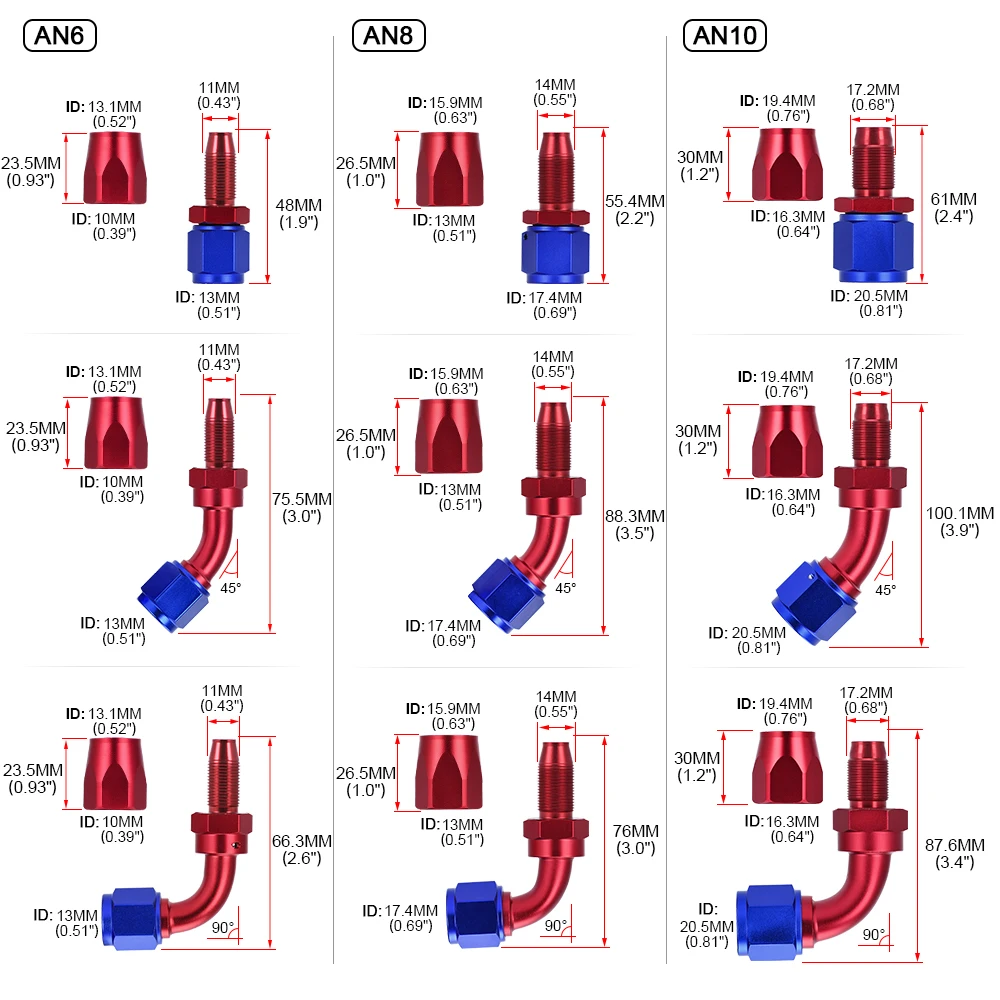 1.Tamaño: AN4, 6, 8, 10 no significa 6 mm, 8 mm, 10 mm. Lo que corresponde al diámetro interior del tubo era de 8,7 mm, 11,11 mm, 14,2 mm. Por lo tanto, al comprar productos, asegúrese de prestar atención al diámetro interior del tubo.
