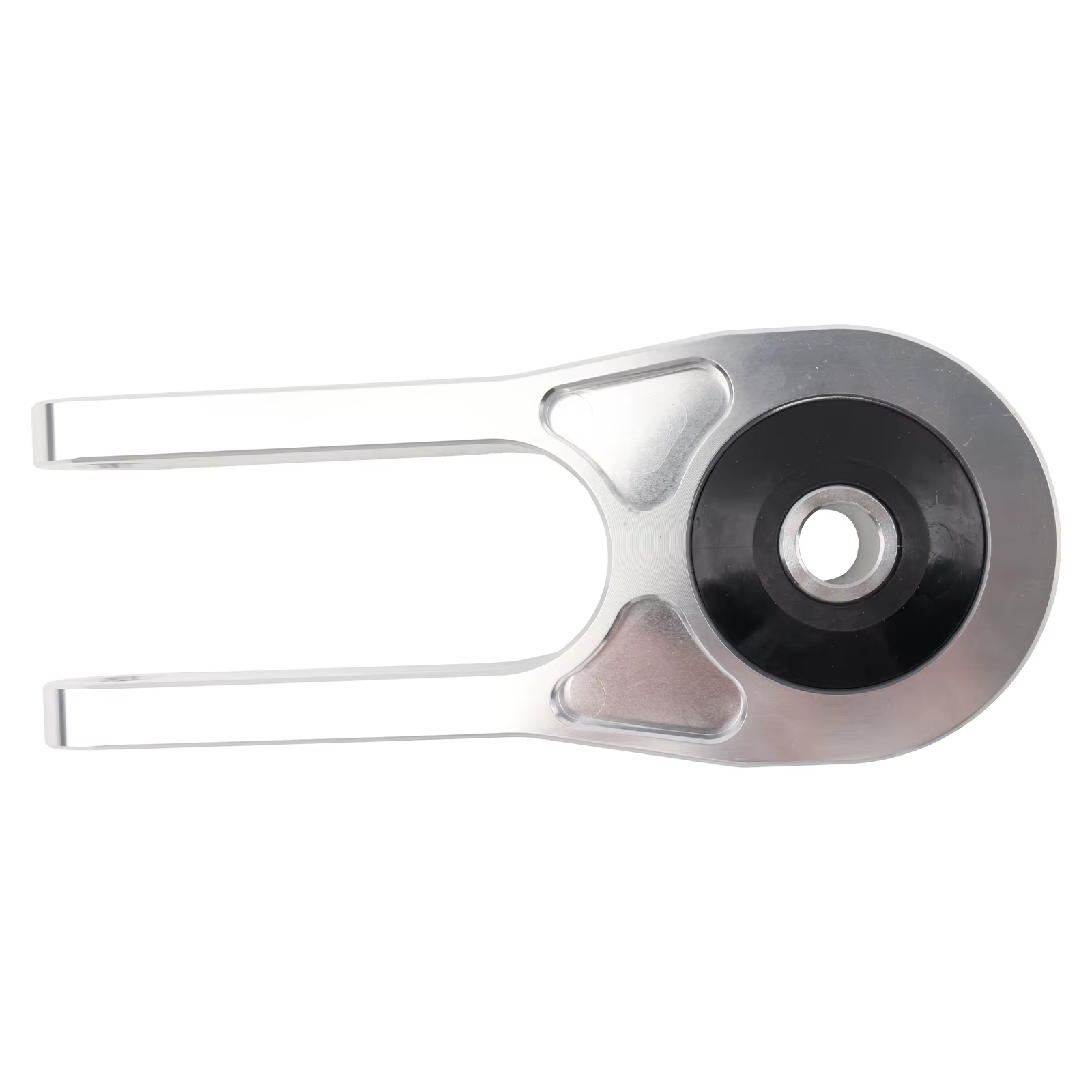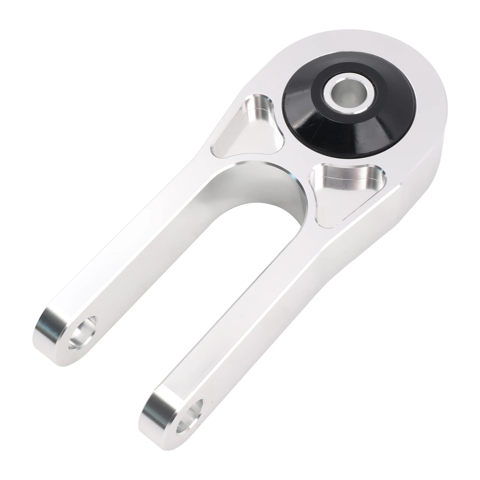 Este soporte de torsión del motor Racing representa la vanguardia en tecnología de montaje de motores. La construcción de aleación de aluminio CNC proporciona una resistencia y ligereza superiores, mientras que los bujes de goma maciza reforzados ofrecen una conexión más directa entre el drivetrain y el chasis.