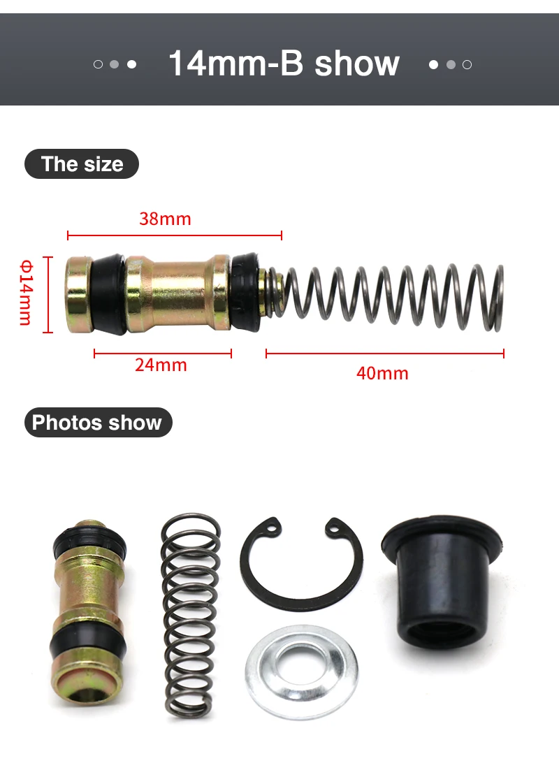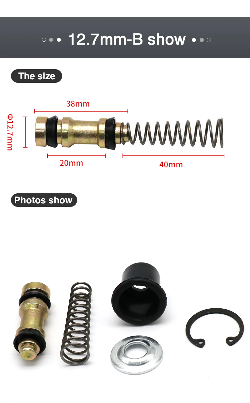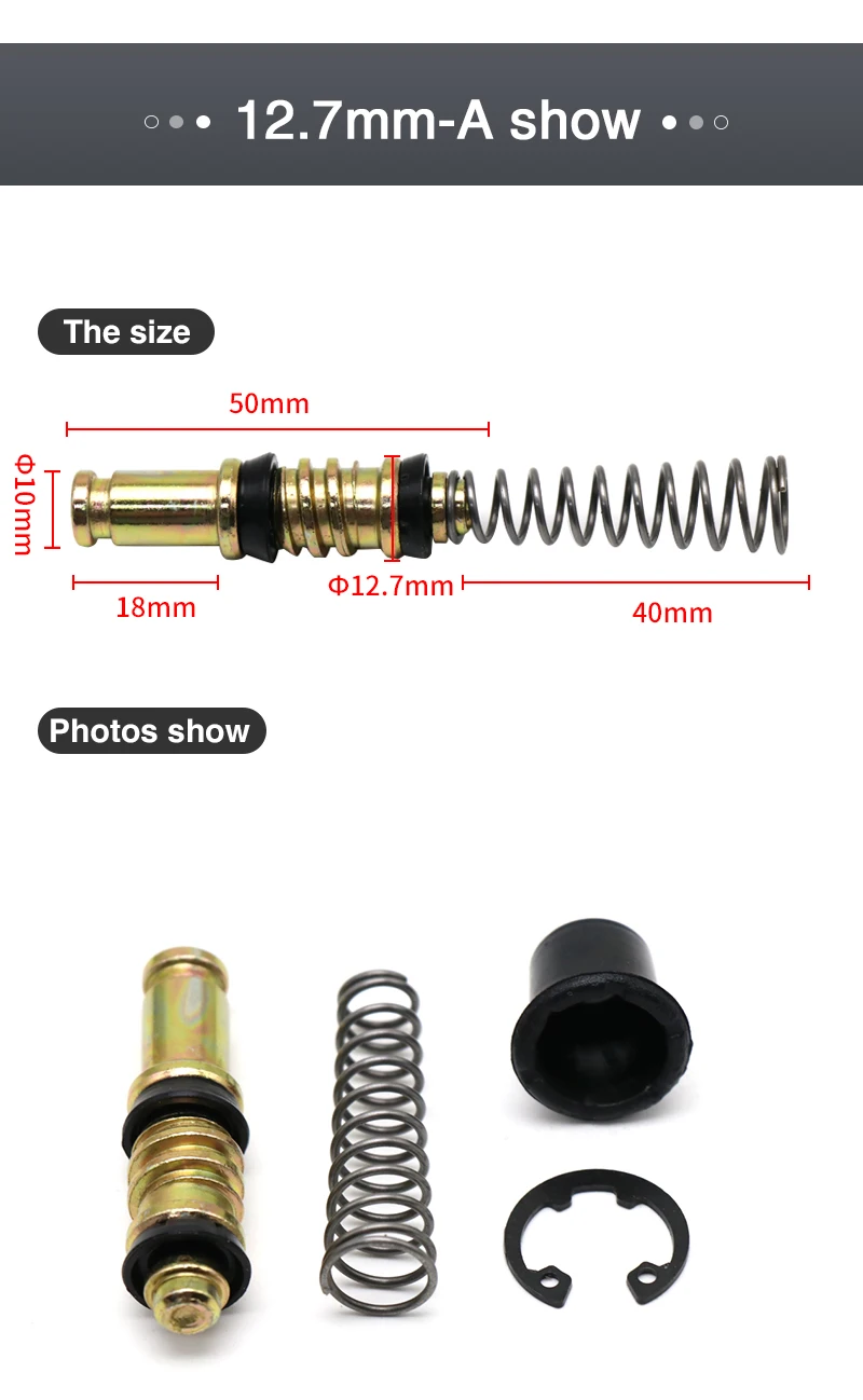 Kits de reparación del émbolo del pistón del freno del embrague hidráulico de la motocicleta. Tamaño: 11mm, 12,7mm,14mm,16mm. Material: acero + caucho.